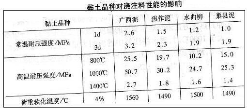 粘土結(jié)合劑用量為9%~12%。因為結(jié)合黏土含有較多的低熔點物質(zhì),耐火性能較差,在滿足配制粘土耐火澆注料的技術(shù)要求時,應(yīng)盡量減少其用量。