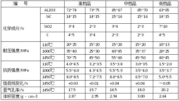 從表中看出,化學成分基本相似,但性能較較大區(qū)別。高檔品的主體材料為電熔致密剛玉,中檔品的為電熔棕剛玉,低檔品的則為優(yōu)質(zhì)燒結礬土熟料:隨著加熱溫度的升高,各檔次產(chǎn)品的強度也隨之增大,與其烘干強度相比,一般提高1~3倍。鐵溝耐火澆注料系致密型材料,生產(chǎn)工藝要求筑襯后應快速烘干,以滿足高爐出鐵的需要。因此,在耐火澆注料中,必須摻加快干劑或防爆劑,以適應快速烘襯的要求。快干劑主要有鋁粉和乳酸鋁等,防爆劑主要有聚苯乙烯纖維和碳釬維等。在國內(nèi)外,應用最多的為金屬鋁粉。應當指出,鐵溝料中添加快干劑和防爆纖維劑后,可做成免烘烤貼購料。