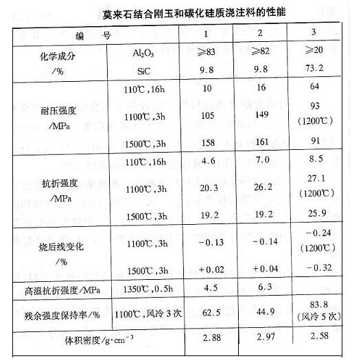 莫來石結合剛玉和碳化硅質澆注料的性能