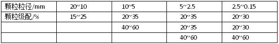 輕質(zhì)耐火澆注料的骨料級(jí)配,一般為連續(xù)級(jí)配,最大粒徑為20mm或10mm。近年來,輕質(zhì)耐火澆注料也作為耐火噴涂料使用,在耐火粉料和結(jié)合劑方面適當(dāng)調(diào)整用量,耐火骨料最大粒徑則用5mm。(表1)為輕質(zhì)磚砂的顆粒級(jí)配。從表中看出,一般粗骨料用量多,細(xì)骨料用量少,這樣可減少耐火粉料和結(jié)合劑的用量,從而降低耐火澆注料的體積密度和提高其性能。當(dāng)能達(dá)到耐火澆注料體積密度的要求時(shí),其粗細(xì)骨料質(zhì)量比為50:50或40:60為宜。