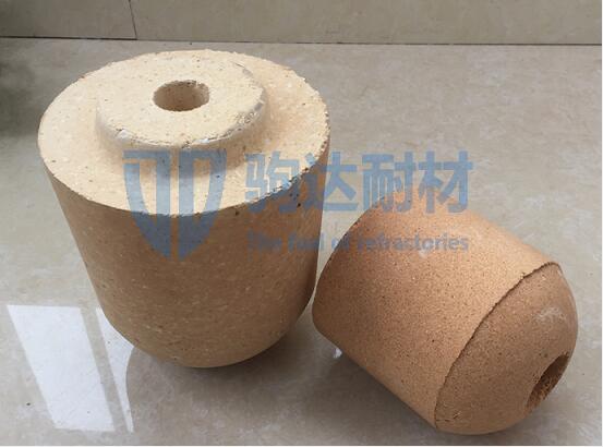 塞頭磚位于塞棒最下端和水口磚呈嚴(yán)密配合的耐火材料質(zhì)磚。不澆注時它堵住水口保證不漏鋼。澆注時提高塞棒,使塞頭磚和水口磚產(chǎn)生間隙,鋼水從水口流出。控制塞棒的高低,可調(diào)節(jié)鋼水的流出量。塞頭磚可以是黏土質(zhì)、不燒高鋁質(zhì)及焦油浸漬的不燒高鋁質(zhì)磚