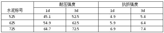 CA-50水泥的主要礦物組成為CA,屬于快硬早強(qiáng)型水泥,其耐火度≥1460℃。下表為CA-50水泥各齡期強(qiáng)度。該水泥標(biāo)號(hào)以3d耐壓強(qiáng)度命名,并取整數(shù)。725#水泥一般用于噴涂料。