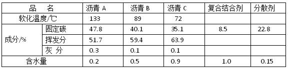 新型補爐料的原材料主要有電熔鎂砂、燒結鎂砂和制磚鎂砂等,臨界粒徑有18mm、10mm和8mm的,一般采用連續四級顆粒級配,骨粉料質量比約為7:3:結合劑主要用瀝青和酚醛樹脂等,并加分散劑和其他外加劑。(下表I)為新型補爐料用結合劑和分散劑的性能。