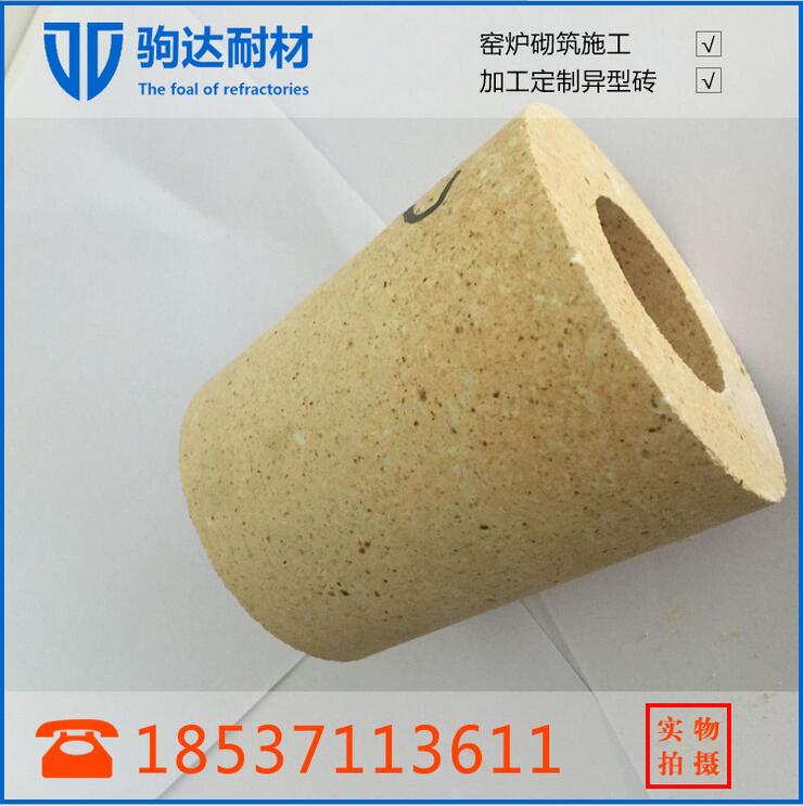 定徑水口用于小方坯的澆鑄,借助出口的孔徑來調(diào)節(jié)澆注速度,因此要求口徑處耐沖蝕,基本上保持恒定。定徑水口一般用鋯英石或氧化鋯制造,其中ZrO2含量為60%~95%,亦可用鋯英石石墨制造。為保證熱穩(wěn)定性,采用薄壁結(jié)構(gòu)的鑲襯套在水口本體中以降低熱應(yīng)力。為防止?jié)茶T含鋁量高的鋼種時(shí)造成的堵塞,研制了CaO定徑水口與CaO型和ZrO2鑲嵌型的定徑水口。為減少鋼液的二次氧化,定徑水口將逐漸采取浸入式。中國主要是使用ZrO2- ZrSiO4質(zhì)定徑水口鑲襯復(fù)合水口,其中ZrO2含量為60%~75%。