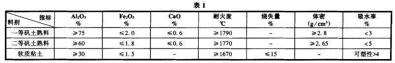 根據理論和實踐鄭州駒達耐火材料有限公司m.wfguoyi.com,采用一、二等高鋁礬土加入少量軟質粘土,能制得荷重軟化溫度和耐壓強度均較高的制品,并能提高制品的成型和燒結性能。原料技術指標如下表1: