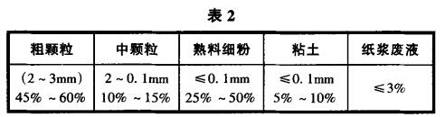 根據實際情況采用表2中的級配制品可達到表3的技術指標: