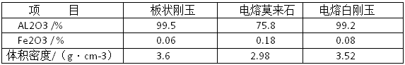 以美鋁公司的板狀剛玉,開封特耐的電熔莫來石為骨料,以電熔白剛玉、電熔莫來石、板狀剛玉以及α—AL2O3微粉為細粉,加入適量氟化鋁為添加劑。由于剛玉—莫來石復合材料與單一的剛玉質或莫來石質材料相比,不但高溫力學性能好、耐火度高,而且抗熱震性更加優異。所以,以適當的比例把莫來石和剛玉混合,以期得到理想的高溫性能。所用原料的主要性能指標見下表。