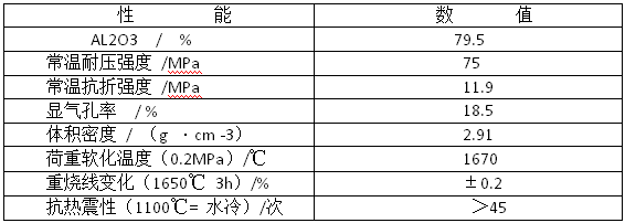 該產品具有高溫強度高、荷重軟化溫度高、重燒線變化率小以及抗熱震性好等特點,經1100℃水冷循環45次后,產品沒有斷裂
