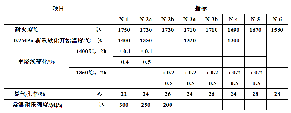 粘土質耐火磚理化指標