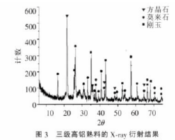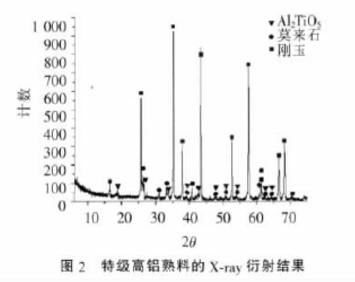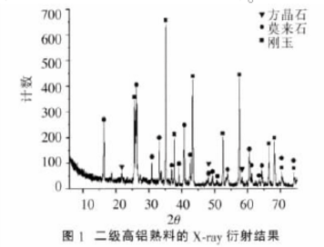 我國有豐富的鋁礬土資源,目前已探明的儲量超過20t,居世界前列。因此礬土熟料的價格相對于剛玉、莫來石、紅柱石要低,而且常用的山西孝義特級、二級及三級高鋁熟料雜質含量較低,見圖1~4。由于以上4種高鋁熟料礦物相主要為剛玉相及莫來石相,不含有低熔點的晶相,因此以上4種原材料都適合作為軋鋼加熱爐的原材料。