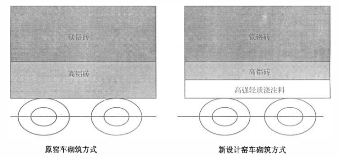 圖1 窯車砌筑圖對比示意圖
