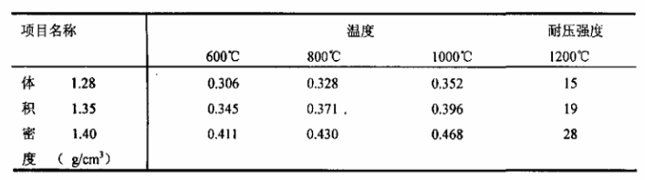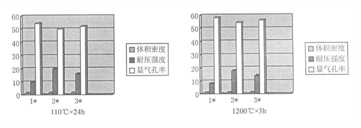 確定耐壓強度≥20MPa(110×24℃),體積密度≤1.35g/cm3,線變化率+0.3~-0.3%。這三項指標的確定能夠解決使用中塌陷和裂紋的現象。
