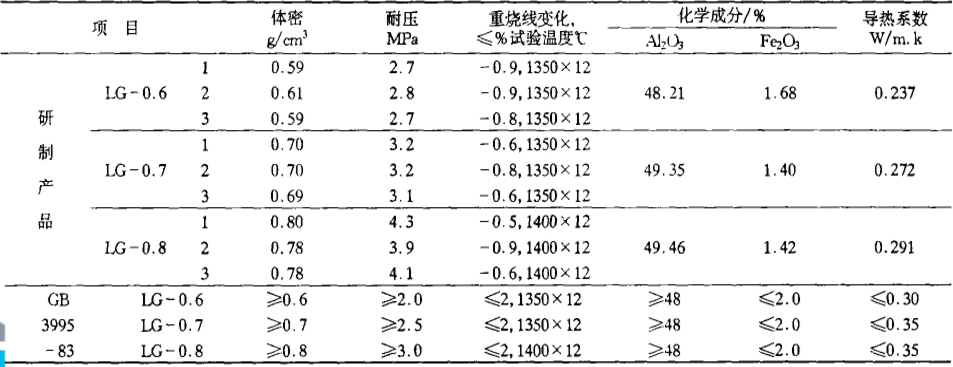 從以上測試結果可以看出,輕質隔熱耐火磚的指標超過了GB3995-1983中對同牌號產品的要求。由于配方中引入了燒失物,降低了粉煤灰、漂珠的用量,使因粉煤灰、漂珠質量波動對制品的影響程度降低,制品基質的穩定性和高溫性能得到了提高;同時,在激振力的作用下,物料在模具內重新被均勻分布,也使制品個體與批量的差異減少,批量產品質量均一性得到提高。