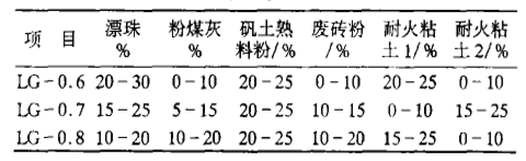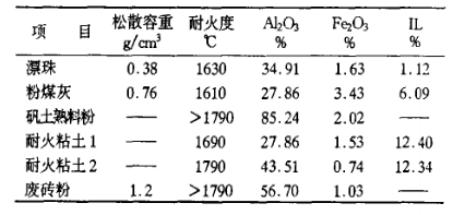 選用粉煤灰、漂珠、礬土熟料、耐火粘土及自粉的廢磚為主要原料。原料的物化性能見表1。