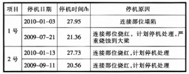 改造前,兩線因連接部位故障導致篦冷機停機情況見表1。