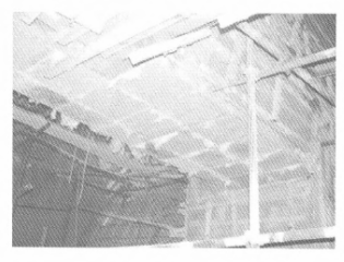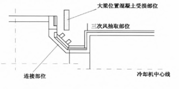 圖1為2號線2010年1月13日連接部位塌落后照片,框架大梁受到長期熱輻射,導致混凝土發生脫落。在2009年3月檢修中工程部曾對此處進行了2天的加固處理,經過此段時,澆注料溫度急劇上升,內部水分無法排出,就會發生澆注料“爆頭”現象,導致表面澆注料發生剝落、凹凸不平,爆裂最深處達到10mm,嚴重縮短了澆注料的使用壽命。在2010年3月份檢修過程當中又對此處進行了修復,影響了整個中修檢修的進度。