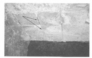 圖7為使用7個月后的情況。圖中箭頭所指方向為預制件之間預留的膨脹縫隙,可以看出膨脹縫隙,可以看出膨脹縫隙各不相同,當時在寬的縫隙中填塞了火棉和火泥。