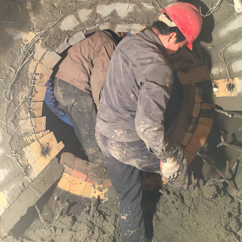 (4)耐火澆注料的使用澆注料必須整桶、整袋地使用,攪拌好的澆注料一般必須在30min內(nèi)用完,在高溫干燥的作業(yè)環(huán)境中還要適量縮短這一時(shí)間,已經(jīng)初凝甚至結(jié)塊的澆注料不得倒入模框內(nèi),也不得再加水后攪拌使用。