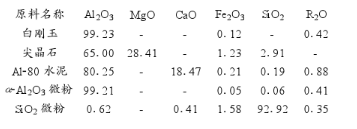骨料采用電熔白剛玉,細粉采用尖晶石,結合劑選用Al-80水泥,加入適量添加劑,合理配合后加水,經振動成型,制成40×40×160試樣,經干燥,燒至各溫度進行檢測。
