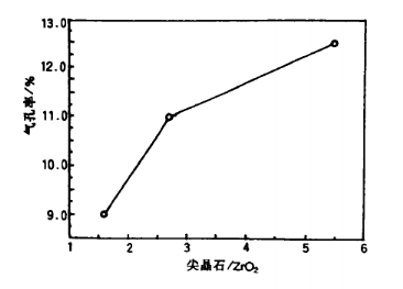 圖2 尖晶石/ZrO2對氣孔率的影響