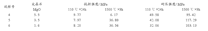 不同尖晶石微粉/ MgO微粉比對澆注料性能的影響