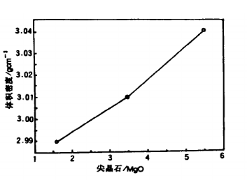 圖3 尖晶石/MgO對體積密度影響