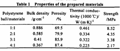 也就是說,本實驗制備出體積密度為0.37 g/cm3的莫來石剛玉材料,熱導率低至0.22W/(m·K),這在目前保溫材料的文獻報道中還不多見。