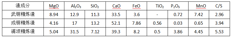 表2 不同鋼廠精煉渣化學成分 (W/%)