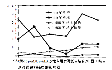 2.3結合劑的選擇對剛玉-尖晶石鋼包料的影響