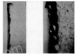 為此,韓國浦項就我們新研制的樣品,自行做渣和鋼水的侵蝕檢測對比,新研制的鋼包料渣和鋼水侵蝕結果如圖6所示,浦項公司鋼包料淹和鋼水侵蝕結果如圖7所示。