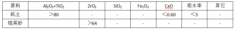 由于熱力學與動力學的平衡與反應過程的滯后,在液相中可能存在未反應的ZrSi04。表1為原料的化學成分與物理指標。