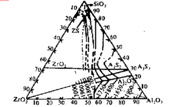 圖1 Al2O3-ZrO2-SiO2三元系相圖