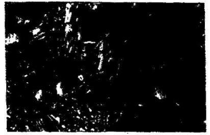 樣磚表面觀察表明,反應層較薄,呈灰色,結構松散。過渡層厚度與其相近,均約5mm,呈棕褐色、較致密但無裂紋。反應層與過渡層結含松散。原磚層未變化。反應層、過渡層之間的界線分布均勻,幾乎是在同一平面上。這說明熟料對其侵蝕速度接近,也表明磚材質地均勻。