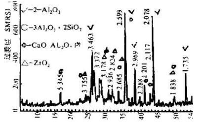 3.2 巖相分析,電鏡分析,X-射線分析如圖3-5所示,反應層變化較大,在該層發現了新的礦物相高熔點化合物CA6,同時發現β-Al2O3、α-Al2O3及極少量霞石。除了霞石對試磚產生有害影響外,前二者對水泥熟料進一步浸蝕磚面,與磚產生化學反應,強固粘結磚面均有阻礙作用。
