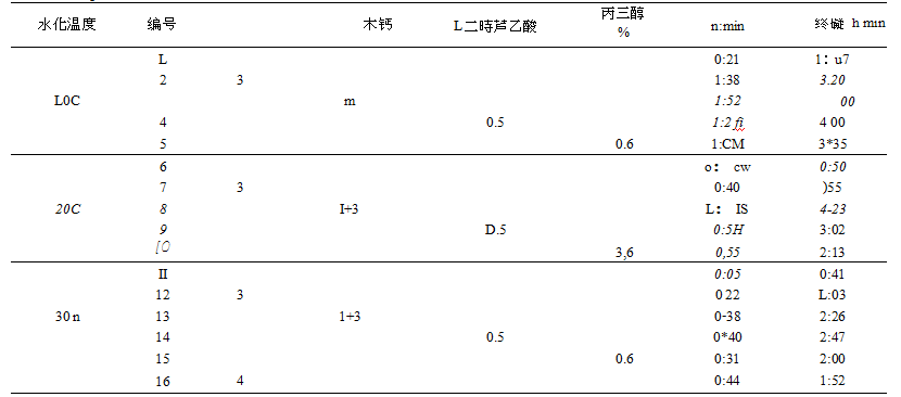 表3說明C11A7·CaF2的凝結時間可以通過摻外加劑人為控制進行調節。從經濟效益考慮,木鈣與CaC03價廉,且來源廣,是較好的外加劑。