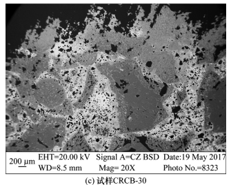 鉻剛玉磚CRCB-30的結(jié)構(gòu)與高鉻磚CRB-86相似,但因其含有高達(dá)60%(w)的Al2O3,而Al2O3極易被飛灰侵蝕,因此該磚的抗飛灰侵蝕性受到限制。可以看出,Cr2O3含量越高,材料的抗飛灰侵蝕性越好。
