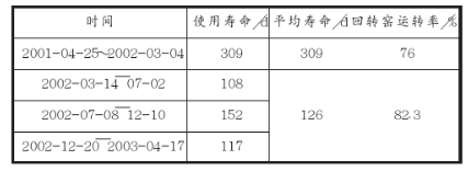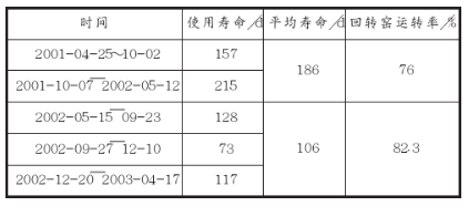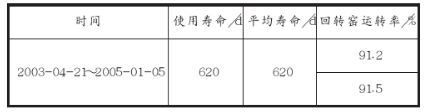 從表1~表3可以看出,2001~2002年窯口2~3.4m及過渡帶19.4~37.4m耐火磚使用壽命偏低,尤其是2002年耐火磚更換頻繁、使用壽命最低。