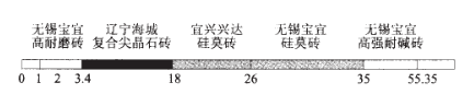 2003年4月以來,在過渡帶改用抗壓強度高、熱震穩定性高的硅莫磚,改用后使用壽命明顯提高,新配磚方案見圖2。
