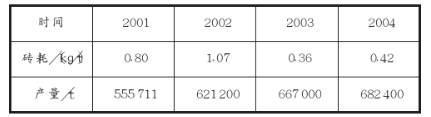 表7 2001年~2004年窯單位熟料磚耗及熟料產量