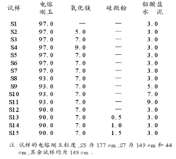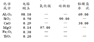 實驗原料采用電熔剛玉、氧化鎂、硅微粉和鋁酸鹽水泥,其化學(xué)成分見表1。