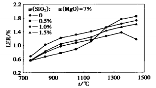 將硅微粉加入量增加至1.5%時,當燒成溫度超過1350℃后,試樣開始呈現(xiàn)收縮。