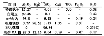 試驗所用原料的化學組成見表1。