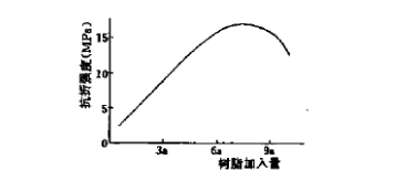 圖2 強度隨結合劑中樹脂加入量變化的曲線