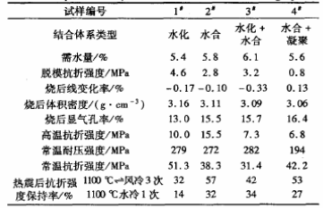 表1 不同結(jié)合體系的試樣的性能