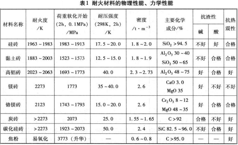 1.2 筑爐耐火材料的物理、力學(xué)性能