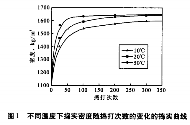 需要指出的是,用于測定焙燒后性能(如體積密度、抗壓強度、電阻率等 )的樣品,必須用此裝置制樣,而不能采用模壓成型。兩種不同制樣方法所制得的樣品的性能差別相當大。根據ISO標準,試樣須在該裝置上搗打100次。圖1中糊的適宜施工溫度范圍是17~40℃。 由圖1可以看出,當在10℃即低于糊的適宜施工溫度下施工時,糊的搗實密度增加慢,且最后密度較小。這種現象稱為“干糊”現象,形成原因可能是施工溫度低于糊的適宜施工溫度范圍,也有可能是糊中粘結劑含量不夠或粘結性能太差。干糊的主要問題一是不能被搗實到適當的密度;二是糊中較粗的骨料顆粒容易被搗碎,形成沒有粘結劑的新表面。焙燒后該糊容易分層,強度過低,形成漏爐隱患。當在5O℃即高于糊的適宜施工溫度下施工時 ,糊的搗實密度增加快,很快就達到了糊的最大密度。這種現象稱為“濕糊”現象 ,形成原因可能是施工溫度高于糊的適宜施工溫度范圍,也有可能是糊中粘結劑含量太多。濕糊的主要問題粘結劑和骨料中的細粉會在表面富集,形成結膜。焙燒后該糊成分不均,容易分層形成漏爐隱患。