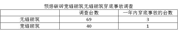 但從實際使用效果看,預焙炭磚的無縫砌筑工藝并沒有減少穿底事故的發生,反而在一定成都上有所增加。