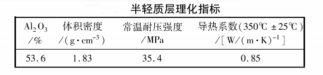 (2)重質與半輕質體積密度差異不能太大。體積密度差異大會在結合處因燒成收縮不一致產生裂紋,經多次試驗,與莫來石耐堿磚復合的半輕質材料體積密度在1.8g /cm-3左右最合適。