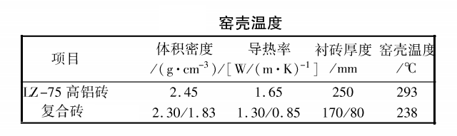 回轉窯多采用高鋁質或堿性磚單層砌筑,由于其導熱系數較大,致使窯殼溫度較高(300℃左右),熱量損失大,能耗高。而采用保溫板、纖維棉或輕質隔熱磚等雙層或多層砌筑形式雖能降低窯殼溫度,但由于窯體的轉動會引起磚體和隔熱層之間的錯位和松動,整體性不好,容易出現掉磚甚至垮塌。采用復合磚,就能有效解決這一問題,重質層和半輕質層復合一體,既降低了窯殼溫度,還能保證窯體轉動過程中的整體性,同時還可減輕內襯重量,利于回轉窯運行。