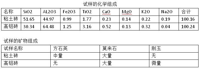 本工作所采用的高鋁磚粘土磚的試樣,其礦物組成,根據(jù)前面所列成分表,主要為莫來石:粘土磚中還有方石英存在,而在高鋁磚中則由微量剛玉晶體。此外,除鐵鈦等尚可能形成少量晶體之外,其余雜質(zhì)均應(yīng)與SiO2和AL2O3形成玻璃物質(zhì)。其玻璃態(tài)物質(zhì)也以含SiO2為主。